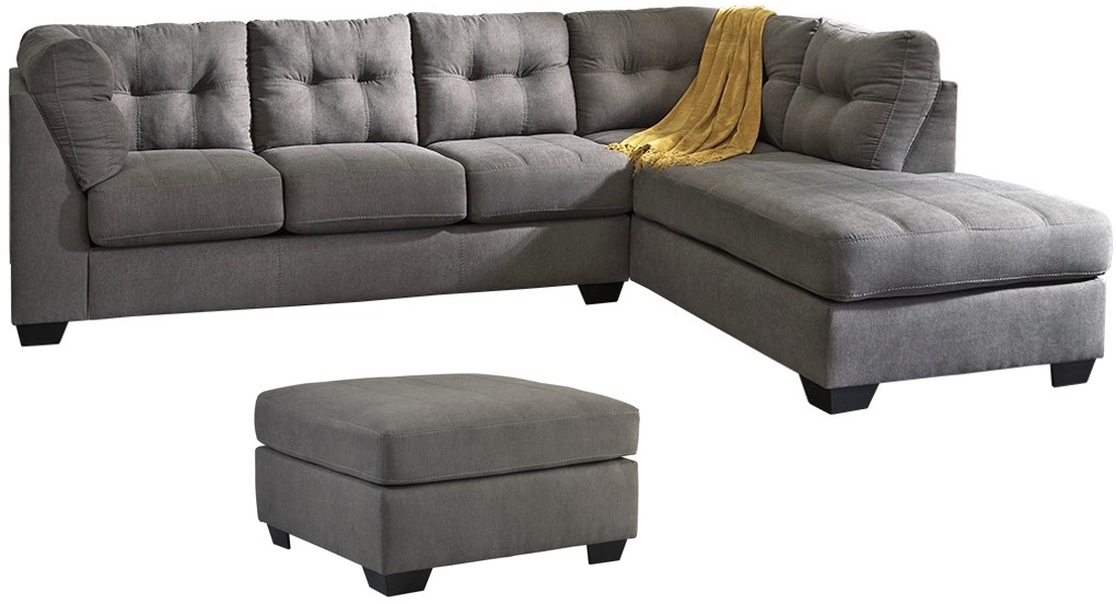 Destination: urban oasis. Elevate your design aesthetic with a chic look inspired by city high-rise living. Sleek, sultry and tailored to a T—with plush, tufted boxed cushions packed with metro modern flair—the Maier 2-piece gray sleeper sectional with ottoman is where sophisticated style meets everyday comfort. Easy-lift full innerspring mattress accommodates overnight guests.