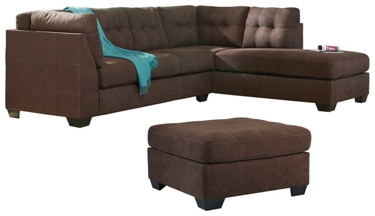 Includes 2-piece sectional (with right-arm facing corner chaise and left-arm facing sofa) and ottoman
