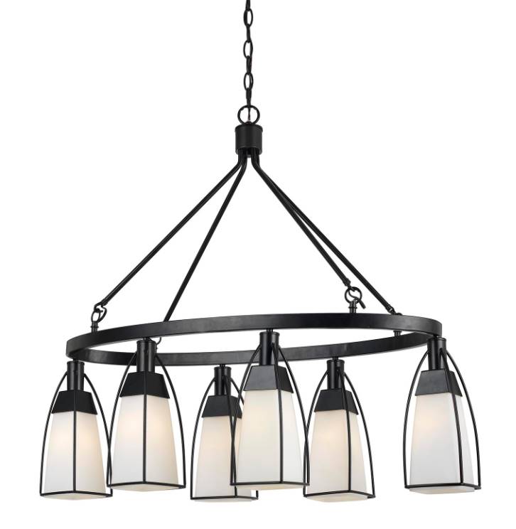 Add an eye-catching look to your living room or bedroom decor with this Channing 6-Light Chandelier. Brighten your home with a 32.75" inch metal and glass chandelier in black finish with durable metal and glass construction.Read More