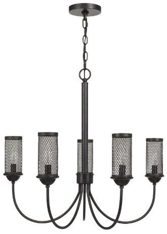 This Fulton Chandelier adds an eye-catching look to your living room or bedroom decor. The textured bronze finish chandelier features a 6-foot metal chain and 10' foot cord. Make a bold statement by incorporating this chandelier into your home.Read More