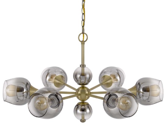 Add a simple yet eye-catching touch to your home with this Chandelier, which features a sturdy metal and antique brass finish with electoral plated smoked glass shades. With a spider-type design, this elegant chandelier is a stylish accent piece for any entryway or living room.Read More