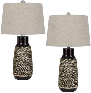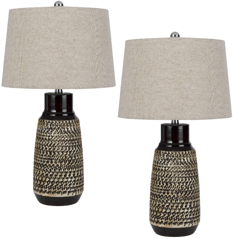 Update your style with this set of black ceramic table lamps. They feature a texturized antique silver finish. Perfect addition to living room, office, bedroom, or entryway. The light spreads gentle adding a cozy atmosphere to any space in your home.Read More