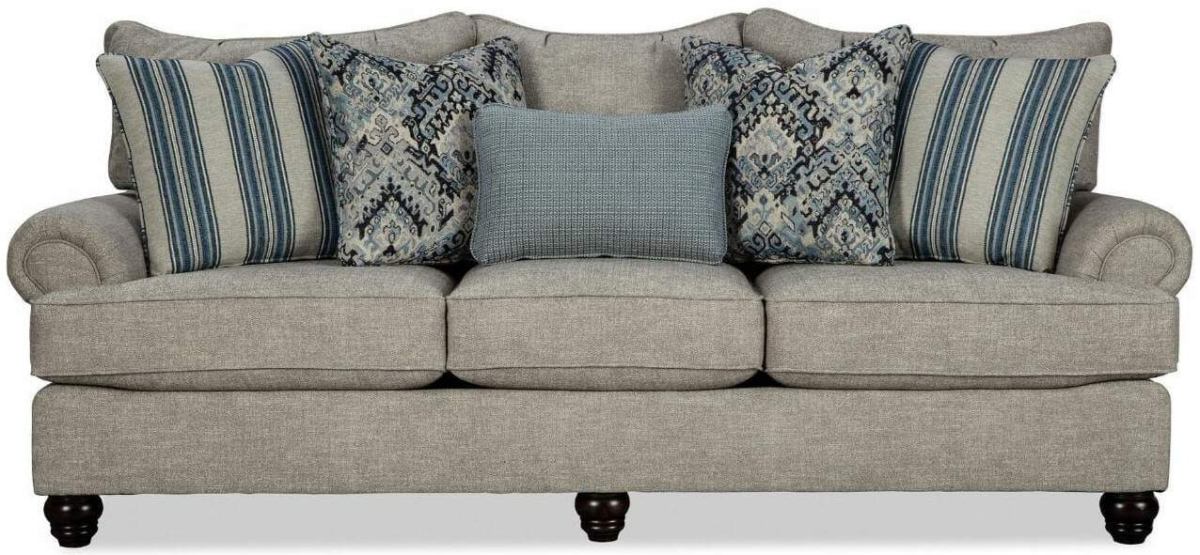 For a bit of classic style, the Kais Sofa by Craftmaster Furniture features luxurious rolled arms with world trim and turned bun feet. This custom sofa offers the best of style and comfort with deep seated premium cushions and soft beige upholstery. Whether your theme is traditional or relaxed, your living space will certainly be filled by the Kais Sofa.Read More