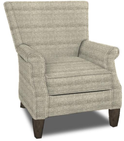 Our best selling chair! This piece offers fantastic comfort and lots of style. Notice the flared, tight back, trimmed with a welted border- it provides great back support with no fluffing! Crisp tailoring on the curvy rolled arms and modern tapered legs finish out this go-to chair that will be an easy addition to your home.