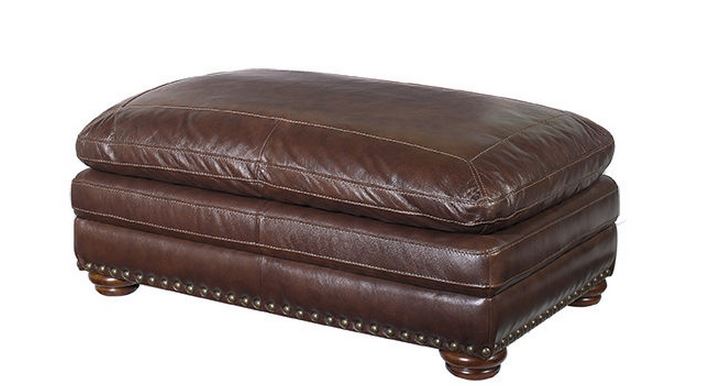 Craftmaster Living Room Ottoman offers dark wooden legs, nail head trim around base and plush seat cushion. Place this ottoman in front of the chair or loveseat to show off the unique style.
