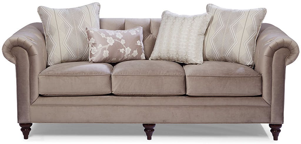 Casual luxury and sophisticated styling meld together to bring a modern update to this classic Chesterfield sofa. It features handcrafted elements like the tall turned legs, as well as a unique assortment of 4 toss pillows for a custom look.Read More