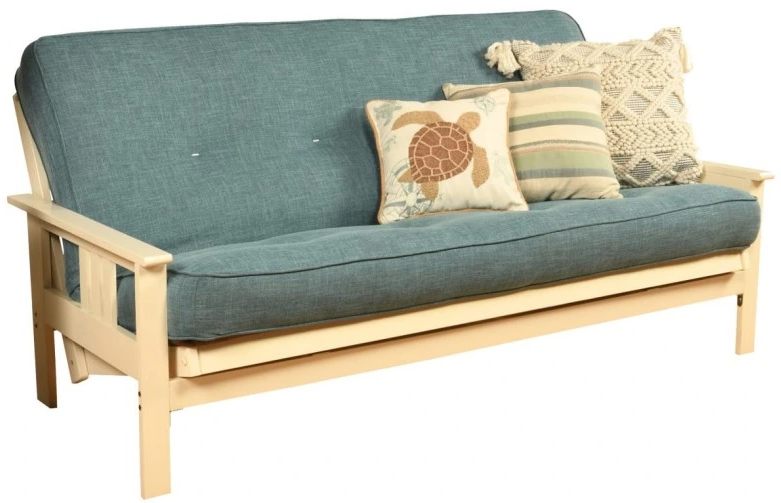 The mission style design on the arms of this solid wood futon frame cradle your mattress for sleeping comfort - pillows and sheets stay put when using it as a bed. This easy-to-adjust frame comes in an array of colors and the comfort of sofa height seating.Read More