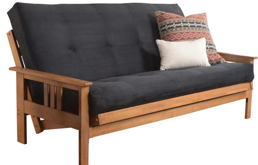 The mission style design on the arms of this solid wood futon frame cradle your mattress for sleeping comfort -- pillows and sheets stay put when using it as a bed. This easy-to-adjust frame comes in an array of colors and the comfort of sofa height seating, making this futon ideal for your bedroom, living room, or family room.Read More