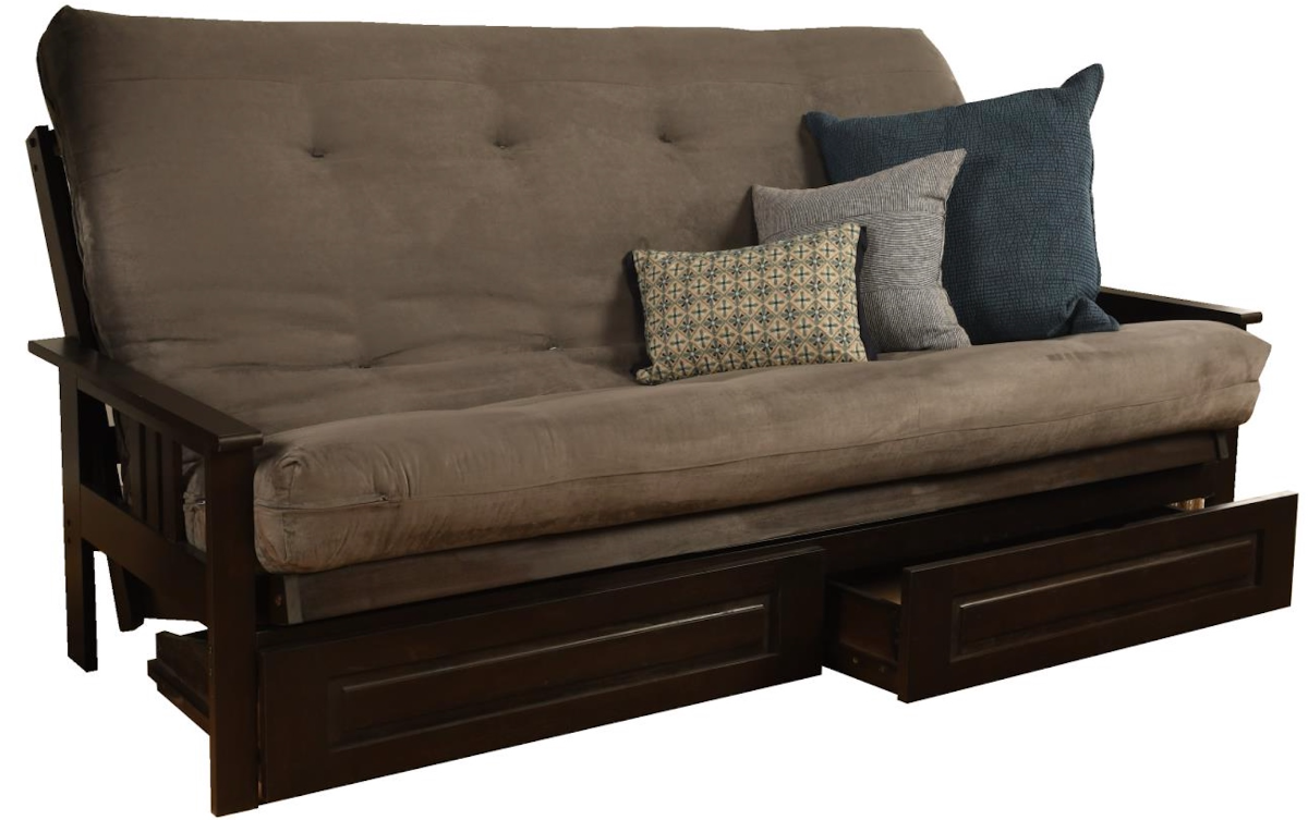 The mission style design on the arms of this solid wood futon frame cradle your mattress for sleeping comfort -- pillows and sheets stay put when using it as a bed. This easy-to-adjust frame comes in an array of colors and the comfort of sofa height seating.Read More