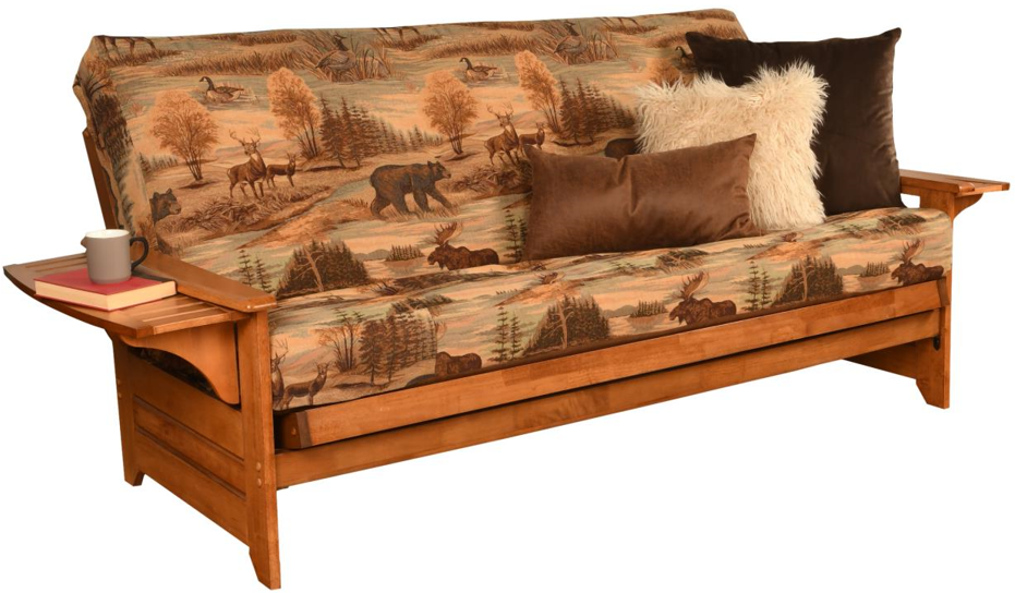 The Phoenix futon is a classic hardwood frame with tray style arms. This unique and versatile full-size futon sofa easily converts to a Bed. It offers three positions - sit, lounge and sleep to seemlessly transition from day to night. This multifunctional piece of furniture can find a home.Read More