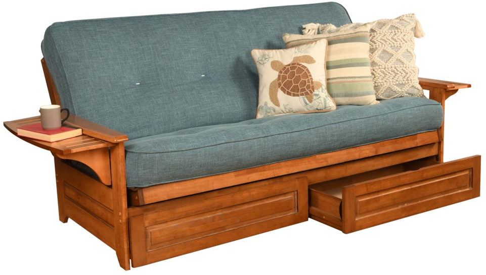 The Phoenix futon is a classic hardwood frame with tray style arms. This unique and versatile full-size futon sofa easily converts to a Bed. It offers three positions - sit, lounge and sleep to seemlessly transition from day to night. This multifunctional piece of furniture can find a home.Read More