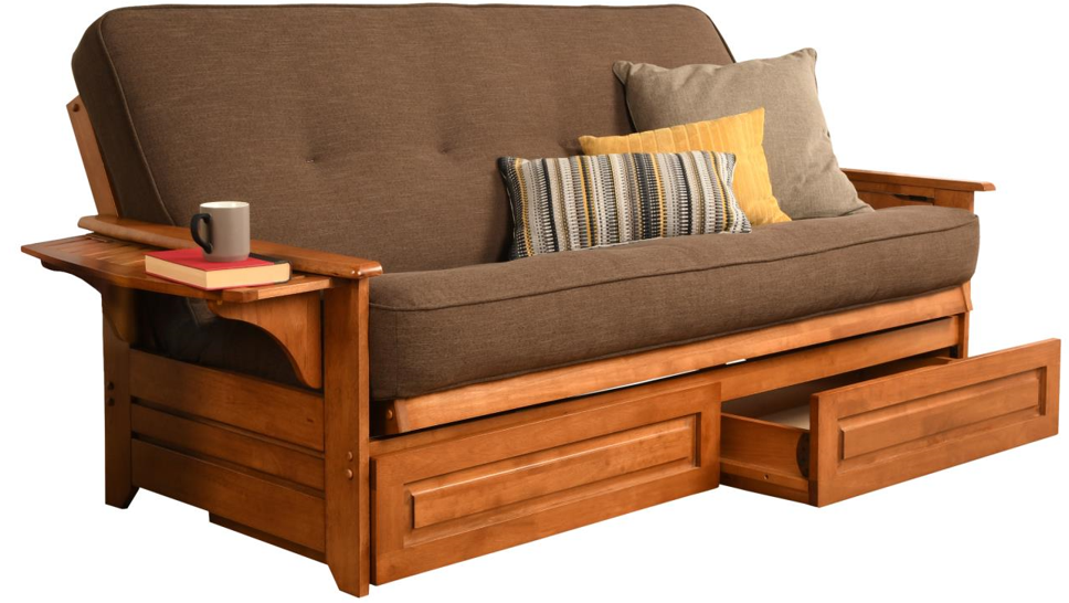 The Phoenix futon is a classic hardwood frame with tray style arms. This unique and versatile full-size futon sofa easily converts to a Bed. It offers three positions - sit, lounge and sleep to seemlessly transition from day to night. This multifunctional piece of furniture can find a home.Read More
