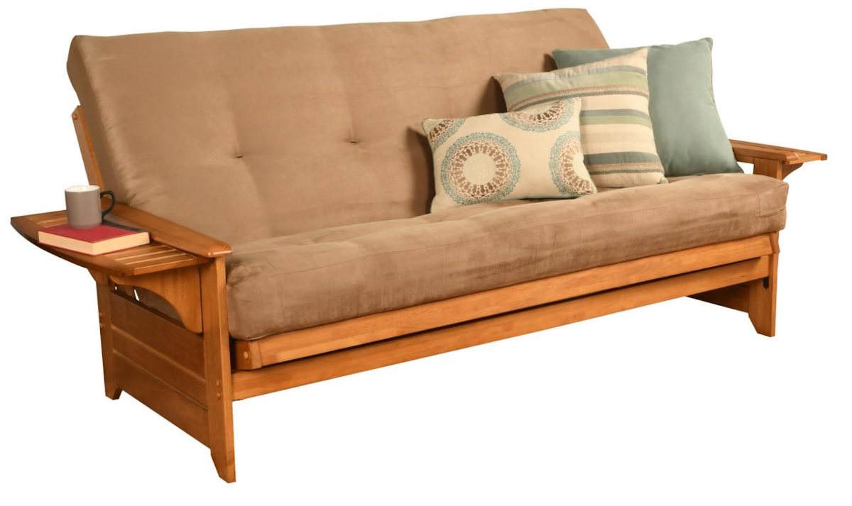 The Phoenix futon is a classic hardwood frame with tray style arms. This unique and versatile full-size futon sofa easily converts to a Bed. It offers three positions - sit, lounge and sleep to seemlessly transition from day to night. This multifunctional piece of furniture can find a home in just about any type of room.Read More