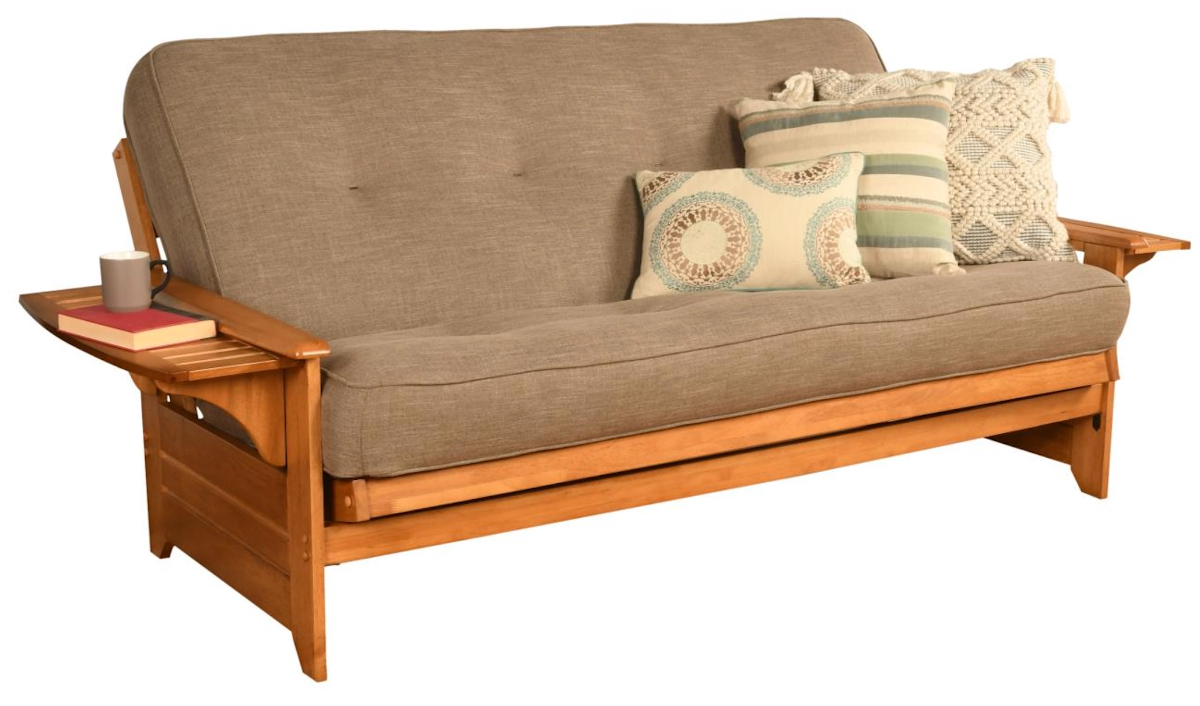 The Phoenix futon is a classic hardwood frame with tray style arms. This unique and versatile full-size futon sofa easily converts to a Bed. It offers three positions - sit, lounge and sleep to seemlessly transition from day to night. This multifunctional piece of furniture can find a home in just about any type of room.Read More