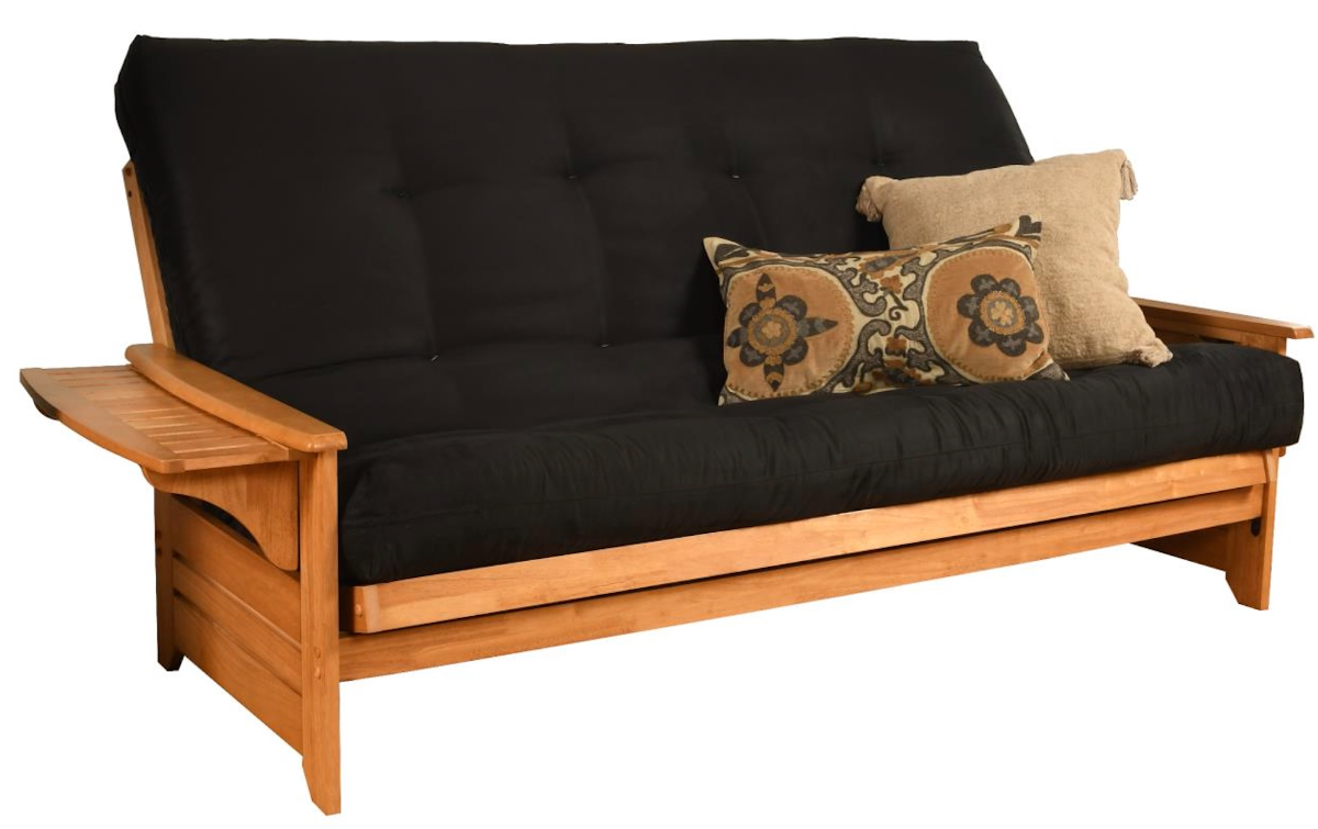 The Phoenix futon is a classic hardwood frame with tray style arms. This unique and versatile queen-size futon sofa easily converts to a Bed. It offers three positions - sit, lounge and sleep to seemlessly transition from day to night. This multifunctional piece of furniture can find a home in just about any type of room.Read More