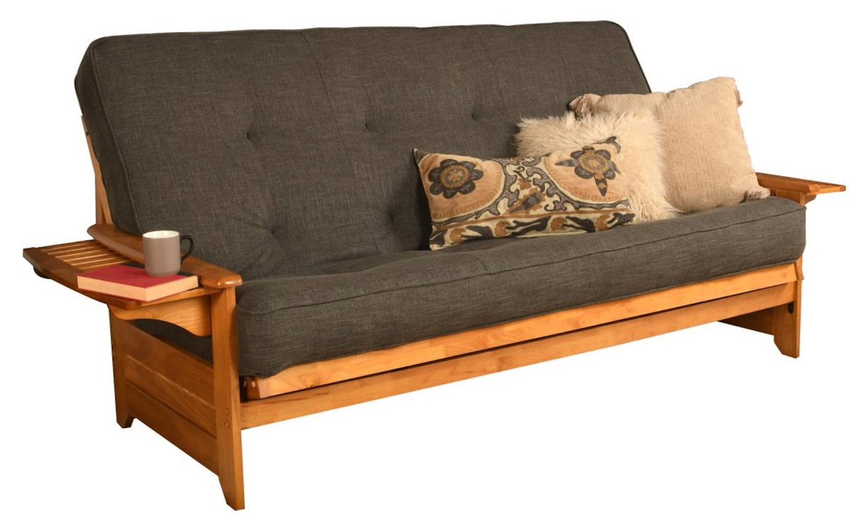 The Phoenix futon is a classic hardwood frame with tray style arms. This unique and versatile queen-size futon sofa easily converts to a Bed. It offers three positions - sit, lounge and sleep to seemlessly transition from day to night. This multifunctional piece of furniture can find a home in just about any type of room.Read More