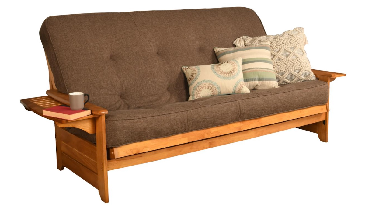 The Phoenix futon is a classic hardwood frame with tray style arms. This unique and versatile queen-size futon sofa easily converts to a Bed. It offers three positions - sit, lounge and sleep to seemlessly transition from day to night. This multifunctional piece of furniture can find a home in just about any type of room.Read More