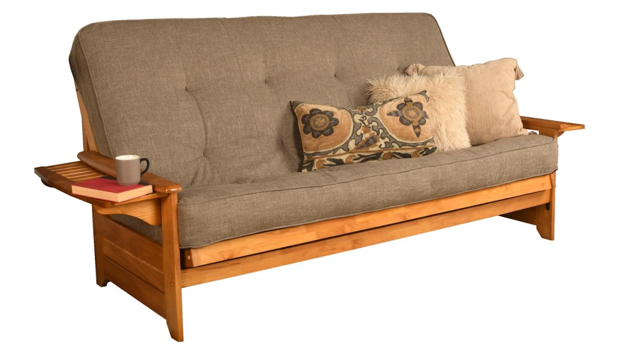 The Phoenix futon is a classic hardwood frame with tray style arms. This unique and versatile queen-size futon sofa easily converts to a Bed. It offers three positions - sit, lounge and sleep to seemlessly transition from day to night. This multifunctional piece of furniture can find a home in just about any type of room.Read More