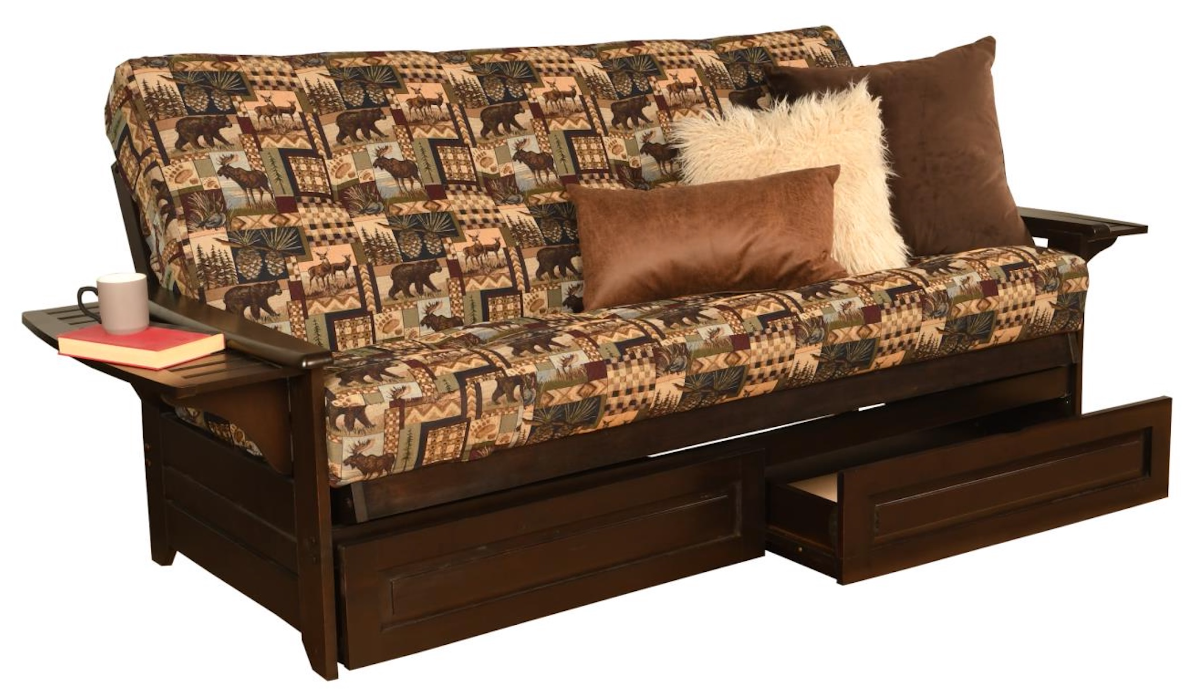 The Kodiak Furniture Phoenix Espresso/Peter's Cabin Full Futon with Mattress and Storage Drawers offers a stylish and functional solution for those seeking a multi-purpose piece of furniture. Whether you're looking for a guest bed, extra seating, or added storage in a small space, this futon combines practicality with appeal.Read More