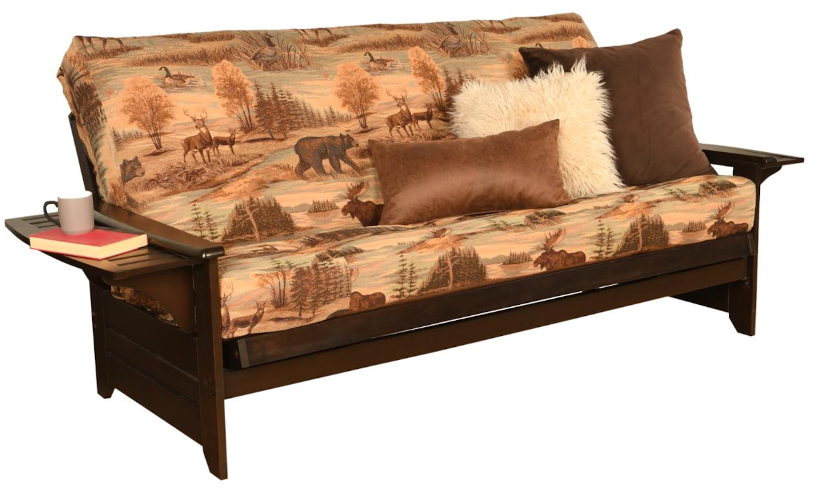 The Phoenix futon is a classic hardwood frame with tray style arms. This unique and versatile full-size futon sofa easily converts to a Bed. It offers three positions - sit, lounge and sleep to seemlessly transition from day to night. This multifunctional piece of furniture can find a home in just about any type of room.Read More