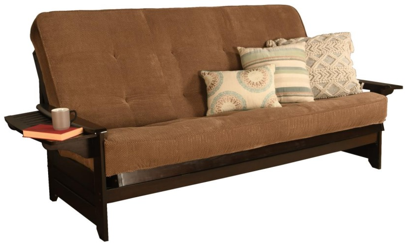 The mission style design on the arms of this solid wood futon frame cradle your mattress for sleeping comfort - pillows and sheets stay put when using it as a bed. This easy-to-adjust frame comes in an array of colors and the comfort of sofa height seating.Read More