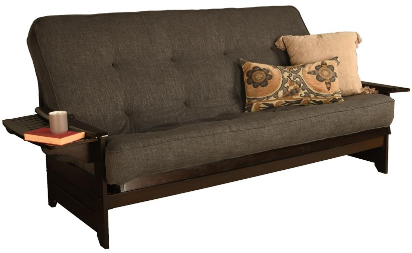 The mission style design on the arms of this solid wood futon frame cradle your mattress for sleeping comfort - pillows and sheets stay put when using it as a bed. This easy-to-adjust frame comes in an array of colors and the comfort of sofa height seating.Read More