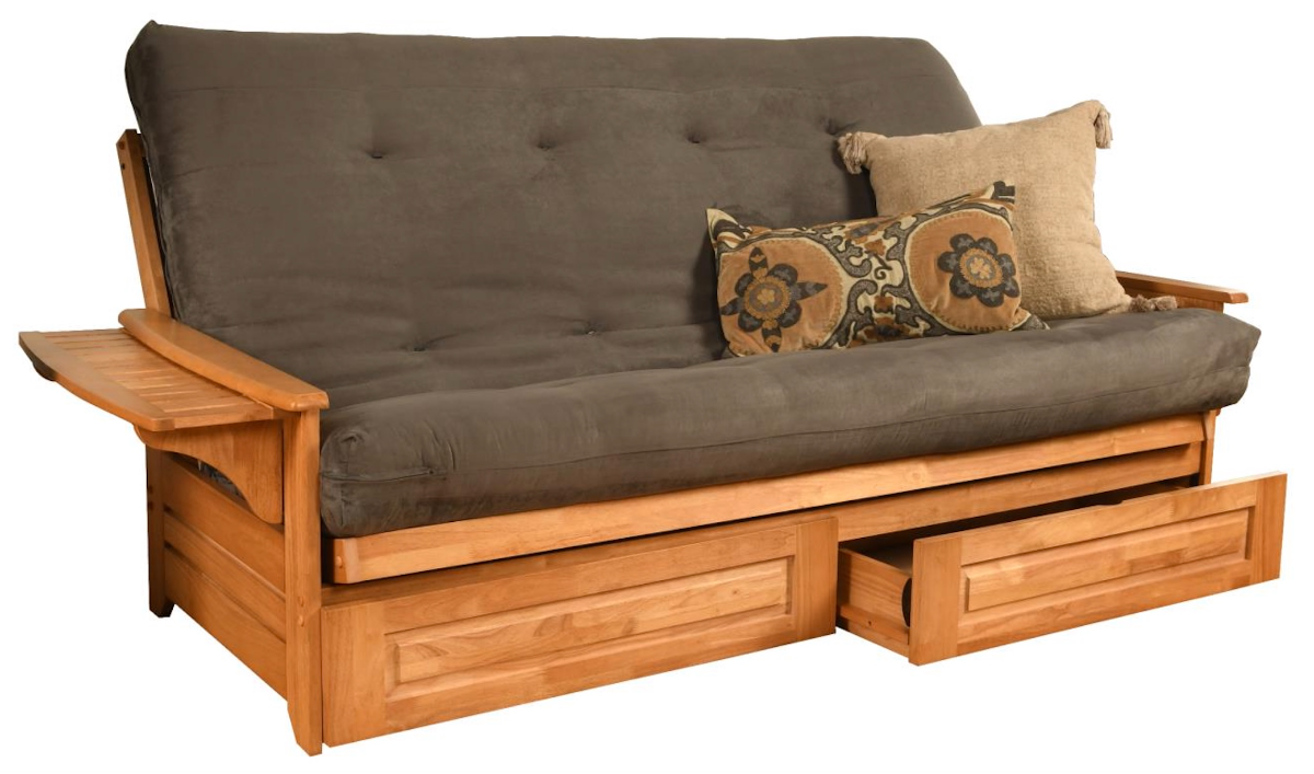 The Phoenix futon is a classic hardwood frame with tray style arms. This unique and versatile full-size futon sofa easily converts to a Bed. It offers three positions - sit, lounge and sleep to seemlessly transition from day to night. The included drawers offer plenty of additional storage space.Read More