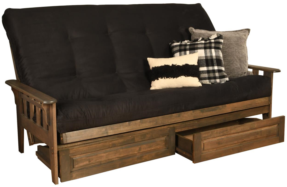 Classic charm combines with modern convenience with this solid wood futon with storage drawers. This queen-size futon is made from sustainable, plantation-grown hardwood and has been finished with lush walnut brown stain, allowing the beauty of the woodgrain to show.Read More
