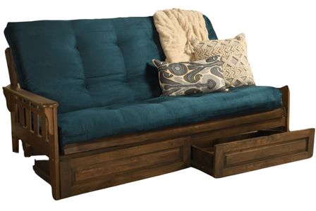 Classic charm combines with modern convenience with this solid wood futon with storage drawers. This queen-size futon is made from sustainable, plantation-grown hardwood and has been finished with lush walnut brown stain, allowing the beauty of the woodgrain to show.Read More