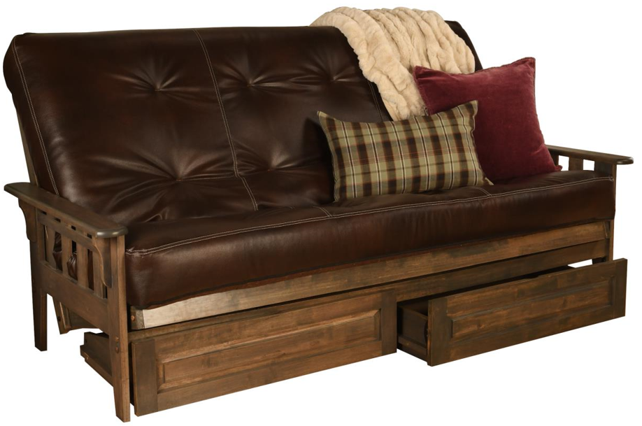 Classic charm combines with modern convenience with this solid wood futon with storage drawers. This queen-size futon is made from sustainable, plantation-grown hardwood and has been finished with lush walnut brown stain, allowing the beauty of the woodgrain to show.Read More