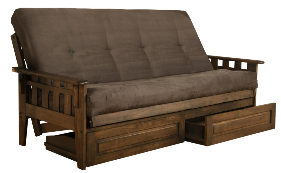 Kodiak Furniture Tucson Suede Gray/Rustic Walnut Full Storage Futon with Mattress