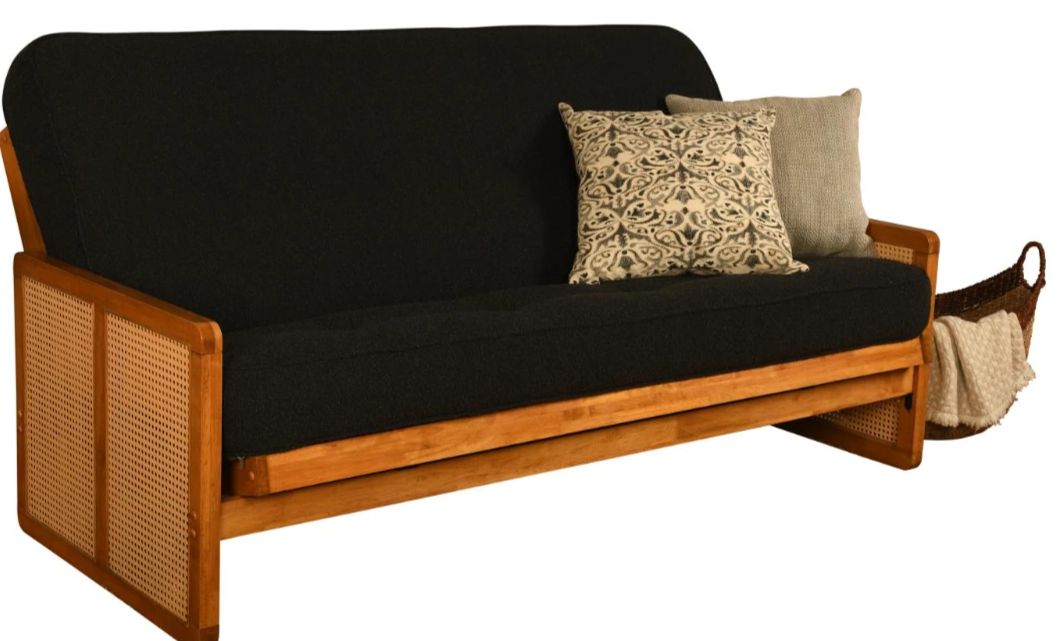 Lounge all day on this beautiful futon. This futon is made of solid wood and woven rattan with a honey finish that will bring a natural warmth to your living room. The generous size makes it perfect as both an accent and functional piece in your space.Read More