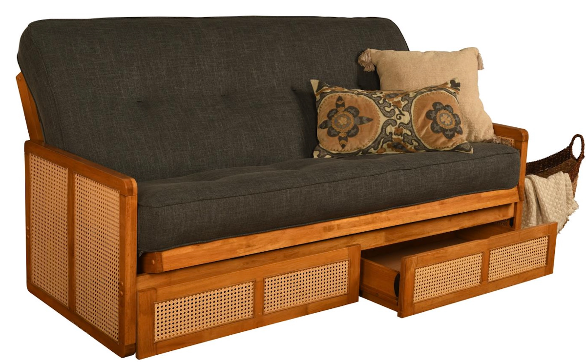 Lounge all day on this beautiful futon. This futon is made of solid wood and woven rattan with a honey finish that will bring a natural warmth to your living room. The generous size makes it perfect as both an accent and functional piece in your space.Read More