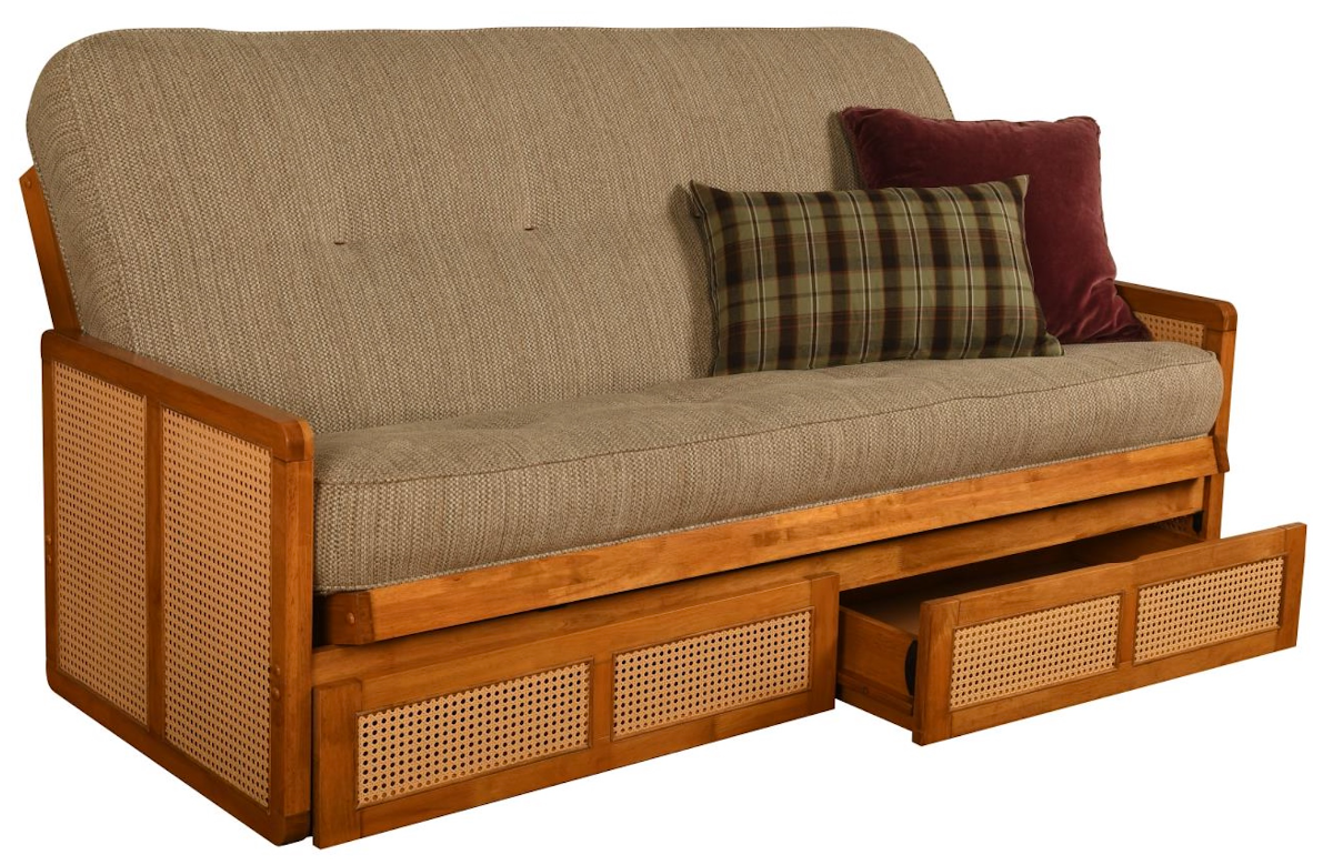 Lounge all day on this beautiful futon. This futon is made of solid wood and woven rattan with a honey finish that will bring a natural warmth to your living room. The generous size makes it perfect as both an accent and functional piece in your space.Read More