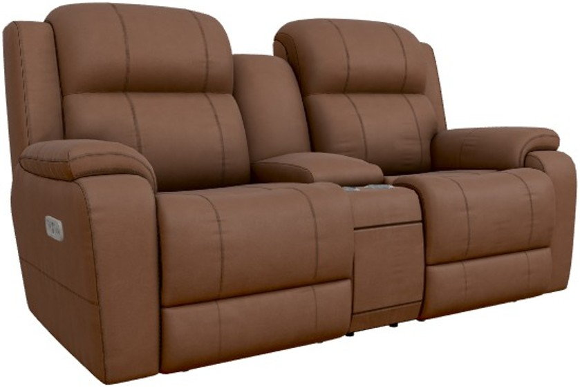 The Dorian power reclining loveseat with headrest and console features large-scale proportions and laid-back style. Power adjustable bucket chaise seats, leg rests and headrests; armrests on either side—even a place for your drinks—relax all the way!Read More