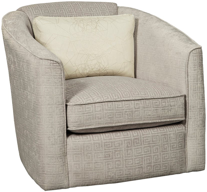 Sleek and comfortable, this swivel chair will add a touch of modern to your living space. It features a rounded silhouette, loose kidney pillow, and Rachael's exclusive Comfort Coil cushion. Also available as a swivel glider as style R071710CLSG.