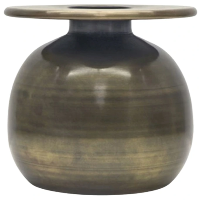 This elegant vase brings a warm, metallic accent to your home. Its antique-brass finish gives it subtle character and timeless appeal. A refined standalone piece, it works equally well as a base for dried florals or decorative branches.Read More